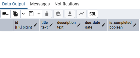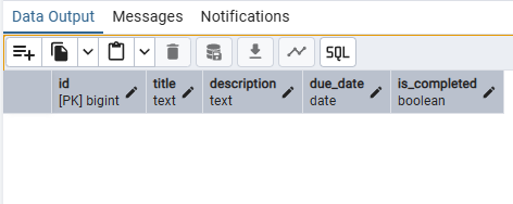 | id | title | description | due_date | is_completed |